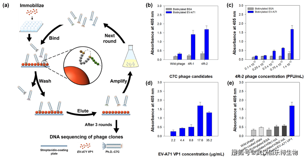 产品应用:以该重组蛋白为靶标,通过噬菌体展示技术筛选并鉴定高亲和力的 EV-A71 VP1 特异性 M13 噬菌体配体,为构建噬菌体基比色生物传感器奠定核心靶标基础。