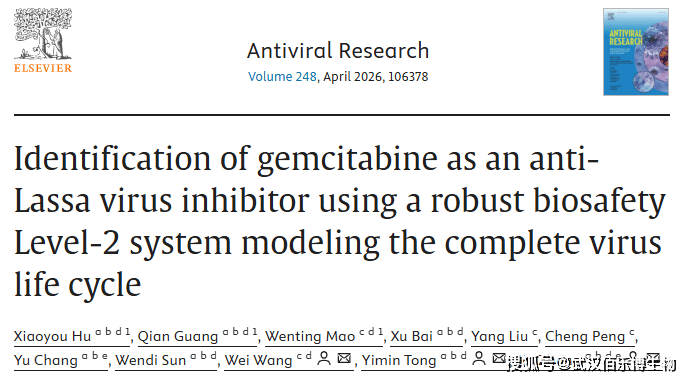 研究标题:Identification of Gemcitabine as an Anti-Lassa Virus Inhibitor Using a Robust Biosafety Level-2 System Modeling the Complete Virus Life Cycle