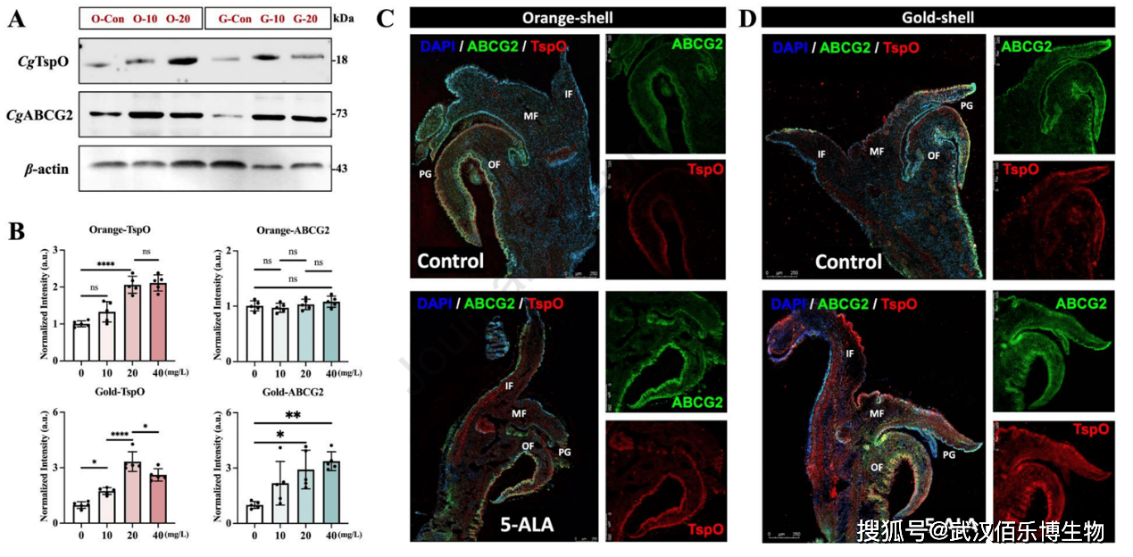 产品应用:该抗体用于Western blot和免疫荧光,检测CgABCG2蛋白在两组牡蛎外套🧥膜中的表达差异,揭示PPIX转运的品系特异性调控机制。