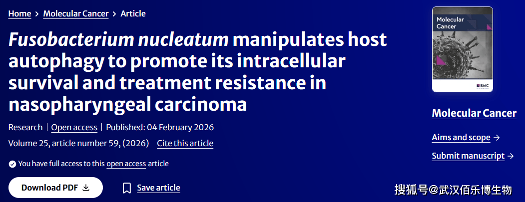 研究标题:Fusobacterium nucleatum manipulates host autophagy to promote its intracellular survival and treatment resistance in nasopharyngeal carcinoma