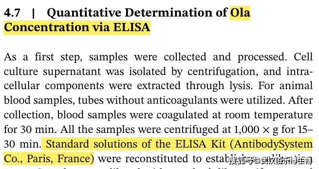 产品应用:使用该产品通过ELISA定量检测细胞培养上清液、细胞内提取物及动物血液样本中的Ola浓度。