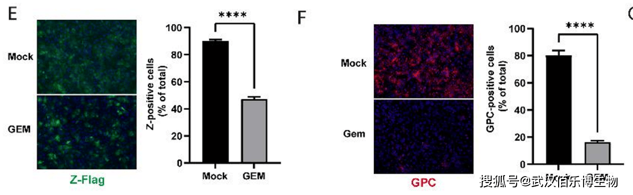 产品应用:该抗体用于免疫荧光检测病毒GP蛋白表达,为阐明GEM抑制病毒蛋白翻译的机制提供关键证据。