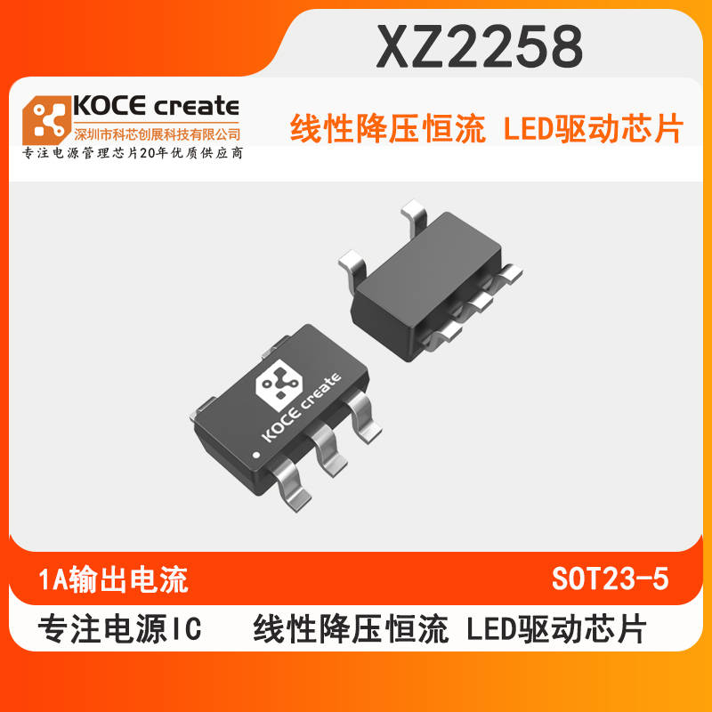 概述 XZ2258是一款1A恒流LED驱动器,旨在提供一种简单且高效的方法来驱动高功率LED。它具备 100mV参考电压反馈控制功能,以限度地减少功率损耗。通过外接电阻器可设定所需的电流 ,从而适用于驱动不同类型的LED。在无负载情况下,其供电电流为40uA,而在关闭状态下则降 至<1uA。2.5V至5.5V的输入电压范围使XZ2258非常适合于由单节锂离子电池供电的应用场景。 100%的占空比可实现低压降操作,从而延长便携式系统中的电池寿命。PWM/PFM模式运行方式 可为对噪声敏感的应用提供极低的输出纹波电压。开关频率被内置设定为1.5MHz,从而能够使用 小型表面贴装电感器和电容器。其他特性还包括用户可访问的用于开启和PWM 调光 LED 的 CTRL 引脚、热停机制、逐次循环电流限值以及过流保护功能。 XZ2258需要少的现成外部元件,并采用节省空间的SOT23-5封装。
