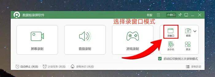 第一步:如何用PPT录制微课?首先双击桌面的数据蛙录屏软件图标,启动后界面会显示游戏录制、音频录制、窗口录制等多种拍摄模式,本次核心解锁窗口录制功能。