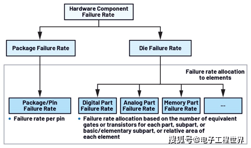 引脚FMEA是FMEA的一种,专注于分析IC封装的潜在失效模式及其对系统功能的影响。引脚FMEA可以与计算出的封装失效率(例如通过IEC 62380)配合使用,以确定IC的失效率分布,如图1所示。失效率可以进一步分为四种情况:安全、危险、无影响或无器件(即不涉及具体器件)。这种失效率认定对于推导安全失效比率(SFF)和SRS危险失效概率至关重要。