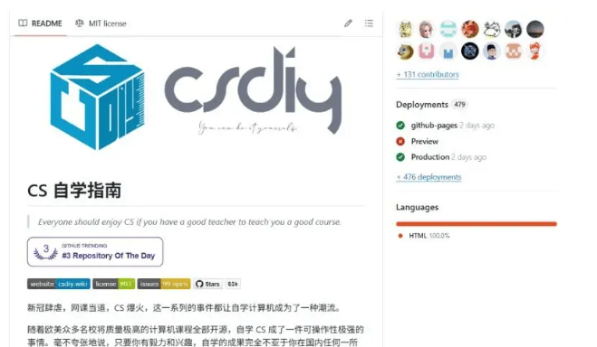 5、CS自学指南先说好,这里的CS不是反恐精英,是Computer Science。这个GitHub项目,堪称计算机自学者的一盏明灯。