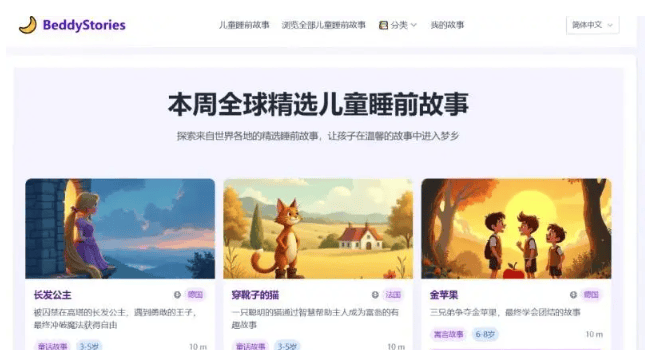 故事不长不短,刚好够哄睡,三观正、语言美,不用担心随口编的故事有啥逻辑bug。下次娃再吵着要听故事,你就可以优雅地打开这个站,点开一个,然后躺平。