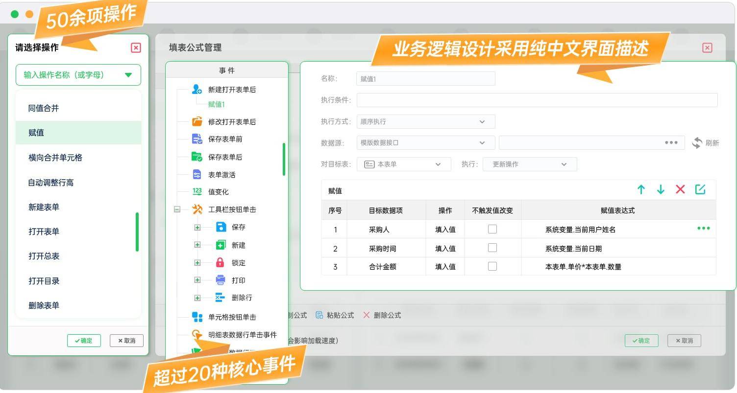 对财务、生产这些业务人员来说,画表格就是设计界面,定义公式就是写逻辑。这种“表格思维”,保留了键盘派最核心的东西——对数据处理的严谨和高效。同时又发挥了鼠标派的优势——画表格式开发,所见即所得。