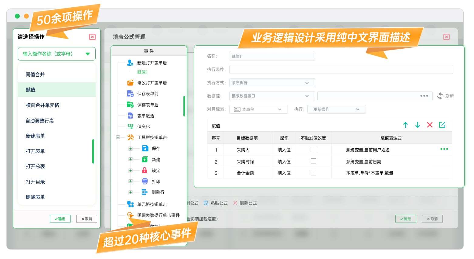无需懂一行代码,不用学复杂的编程逻辑,只要会用表格,就能通过“拖拉拽”、配置“填表公式”,自主开发ERP、MES、OA、进销存等企业级系统。