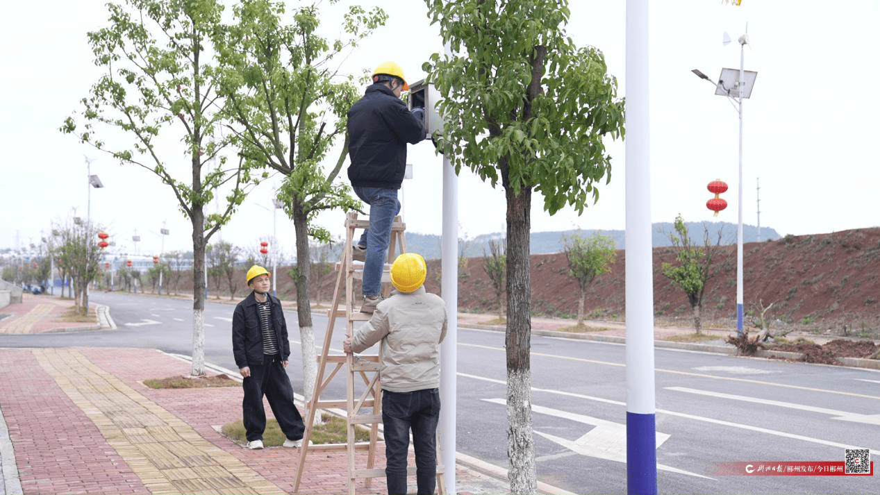 ▲工作人员对园区内的监控设备进行调试